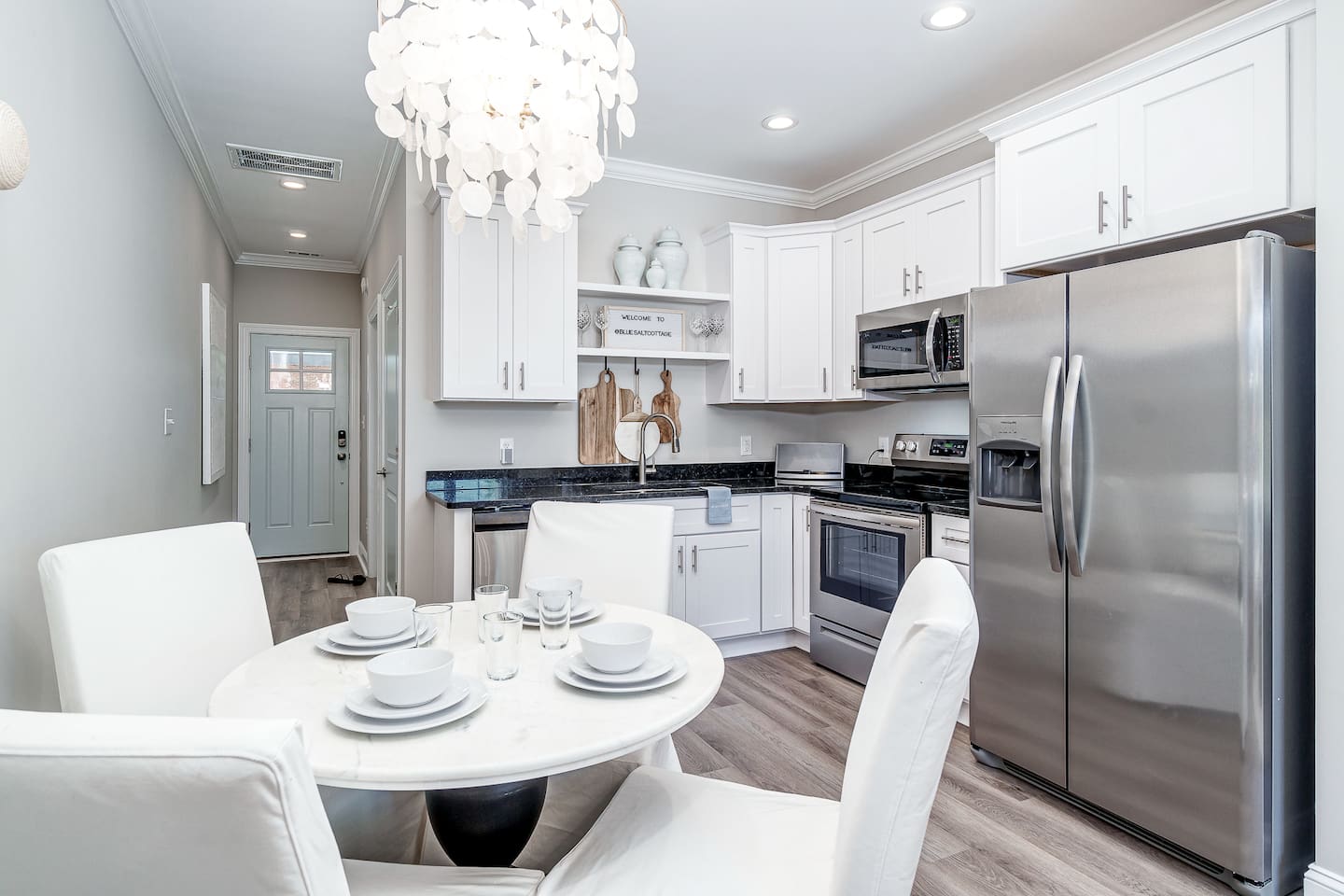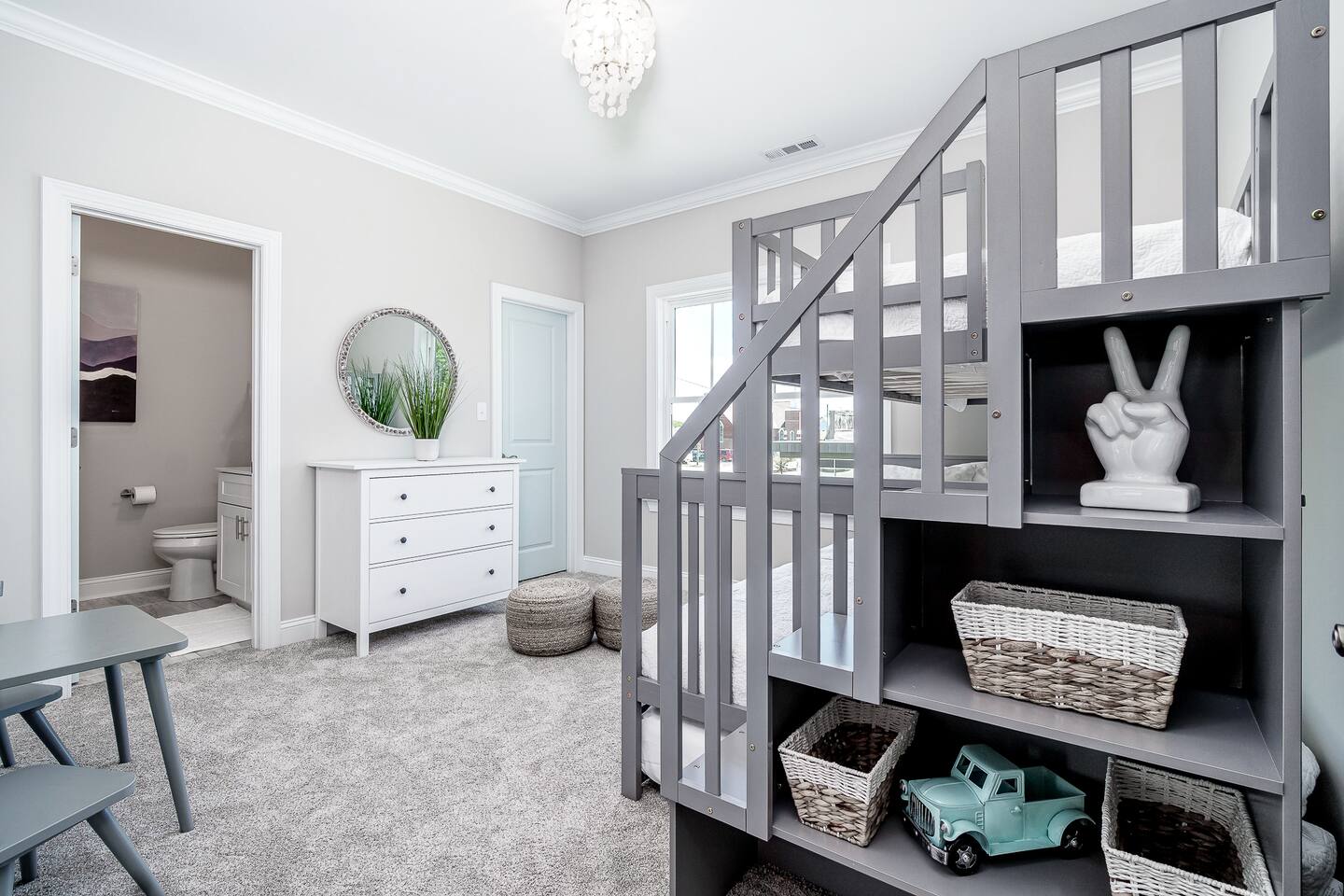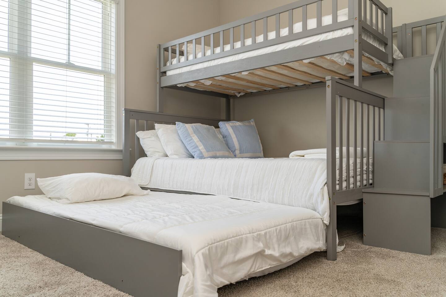 🌊 The Blue Salt Cottage | Modern Luxury Beach Rental in Morehead City, NC ⭐ Highlights & Amenities 🛏️ 3 Bedrooms | 3 Bathrooms – All with ensuite baths 🧑🧑🧒🧒 Perfect for families with kids - this home was designed with families in mind, featuring multiple safety measures and kid-friendly amenities! 🏖️Walk to Sound-Side Beach & Downtown MHC – 3 blocks to public sound-side beach access & waterfront 🌊 Quick Drive to Atlantic Beach – Only a 4-minute drive to the bridge leading to Atlantic Beach, NC ✨Stylish Living Room – 55” 4K Smart TV + plush seating 💻 Work-Friendly – Private desk & high-speed Wi-Fi 🍳 Fully Stocked Kitchen – Cook meals with ease 🚗 Convenient Location – Near shops, restaurants, parks & events 🎨 Professionally Designed by GoldLeaf Interior 🏖️ Location, Location, Location! Nestled in the prestigious Promise Land neighborhood, The Blue Salt Cottage offers the ultimate walkable vacation lifestyle. You’re just: 3 blocks (4-minute walk) to sound-side public beach access & Shevans Park with playground & tennis courts. A short walk to Downtown Morehead City’s waterfront, filled with restaurants, art galleries, boutiques, boat ramps, and local events. Only a 4-minute drive to the bridge leading to Atlantic Beach, NC—making it easy to enjoy both the sound and the ocean in one trip. Close to fitness studios, bars, and coffee shops—everything you need is within minutes. 🌅 Experience Morehead City From Your Doorstep From the moment you step outside The Blue Salt Cottage, the best of Morehead City is waiting for you. Start your morning with a short stroll to a local coffee shop, then wander the waterfront and soak up the coastal charm. In the afternoon, walk to Big Rock Landing to watch the excitement as giant marlin are brought in during the famous Big Rock Blue Marlin Tournament. Afterwards, enjoy a fresh seafood dinner at one of downtown’s acclaimed restaurants—all just steps from your door. When the evening winds down, the convenient location of The Blue Salt Cottage means you can simply walk home, sink into the plush living room couches, and recharge in the comfortable, luxury bedrooms for another day of adventure. 🌸 Spring & Summer - Attend the Big Rock Blue Marlin Tournament in June and watch the weigh-ins up close. - Explore sound-side beaches, kayak rentals, and waterfront festivals. - Take a quick drive to Atlantic Beach for sun, surf, and sand. 🍂 Fall - Take part in the NC Seafood Festival each October, just a short walk away. - Stroll the waterfront art walks and enjoy cooler coastal evenings. ❄ Winter & Holidays - Experience Morehead City’s Christmas parade and waterfront lights. - Cozy up in The Blue Salt Cottage after dining at festive local restaurants. 🛋 Living Room & Work Space - The open-concept living room features a comfortable couch, 55” 4K streaming TV, and stylish décor for relaxing evenings. For traveling professionals, enjoy a dedicated desk & work area paired with fast Wi-Fi, making remote work seamless. 🍳 Fully Stocked Kitchen - The modern kitchen is fully equipped with cookware, utensils, and quality appliances—perfect for whipping up quick breakfasts, seafood dinners, or family-style feasts. 🛏 Bedrooms & Bathrooms Bedroom 1 (Upstairs, King) – King bed, ensuite bath with tub/shower combo, ample dresser storage, and chic comfort-focused design. Bedroom 2 (Downstairs, Queen) – Plush queen bed, striking horse mural feature wall, and a luxury ensuite bathroom with a stand-alone tile shower. Bedroom 3 (Upstairs, Bunk Room) – Twin-over-queen bunk bed with twin trundle, clothes storage, and an ensuite bath with tub/shower combo—ideal for kids or groups. Each of the 3 ensuite bathrooms is spacious, modern, and designed with comfort in mind. ✨ Why Guests Love The Blue Salt Cottage - Luxury interiors curated by GoldLeaf Interior. - Flexible sleeping arrangements for families or groups. - Walk everywhere—shops, restaurants, parks, and waterfront events. - Just minutes to Atlantic Beach for even more coastal fun. - Perfect mix of modern amenities & coastal charm. 📍 Experience the best of Morehead City and beyond—book your stay at The Blue Salt Cottage today! FOLLOW US ON SOCIAL MEDIA @BLUESALTCOTTAGE