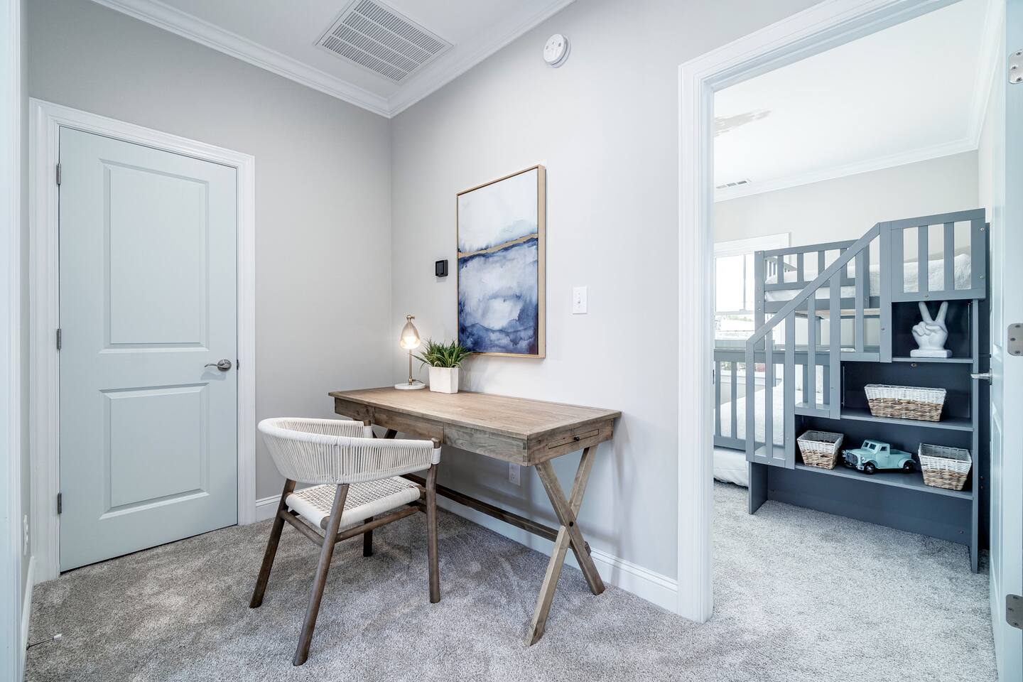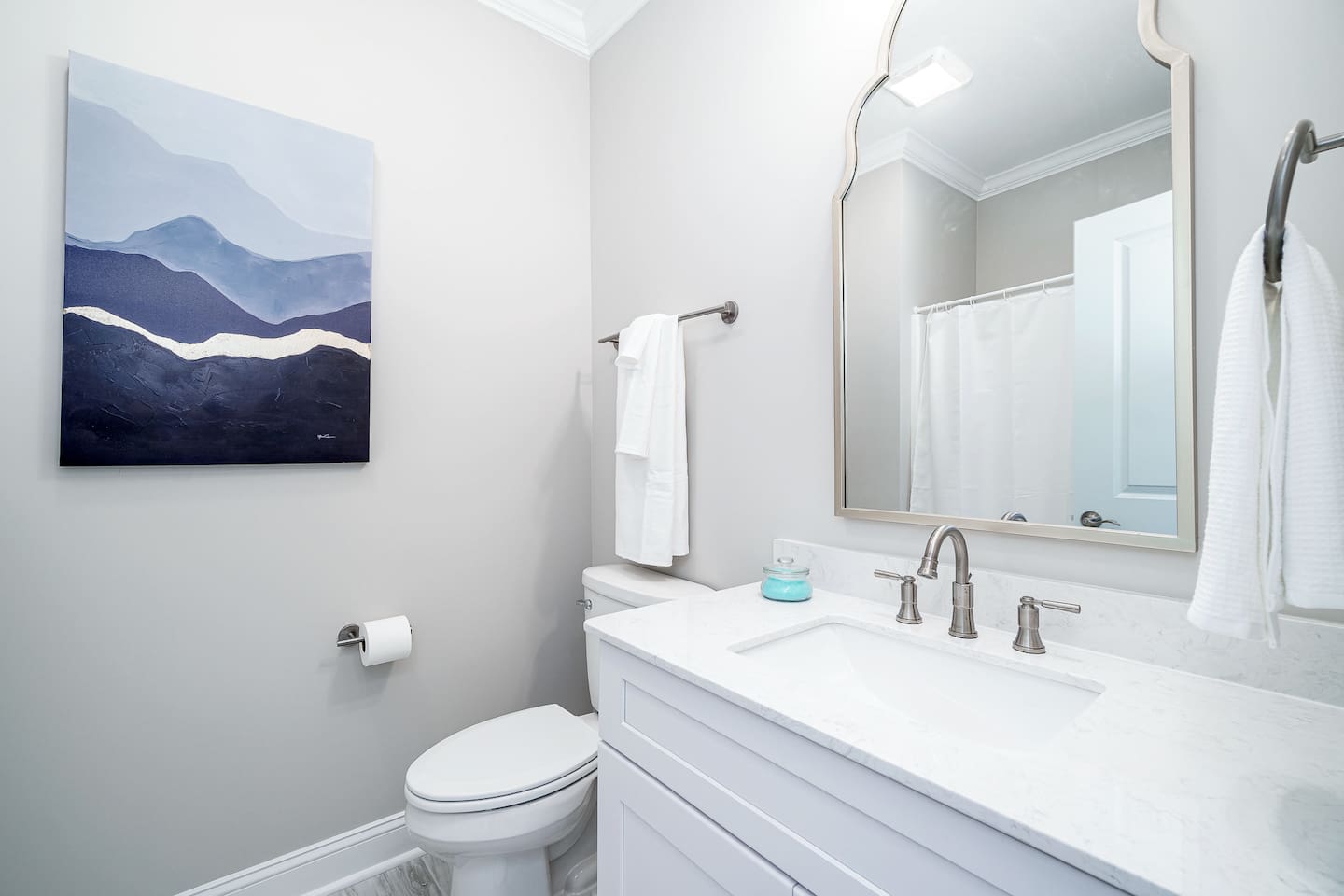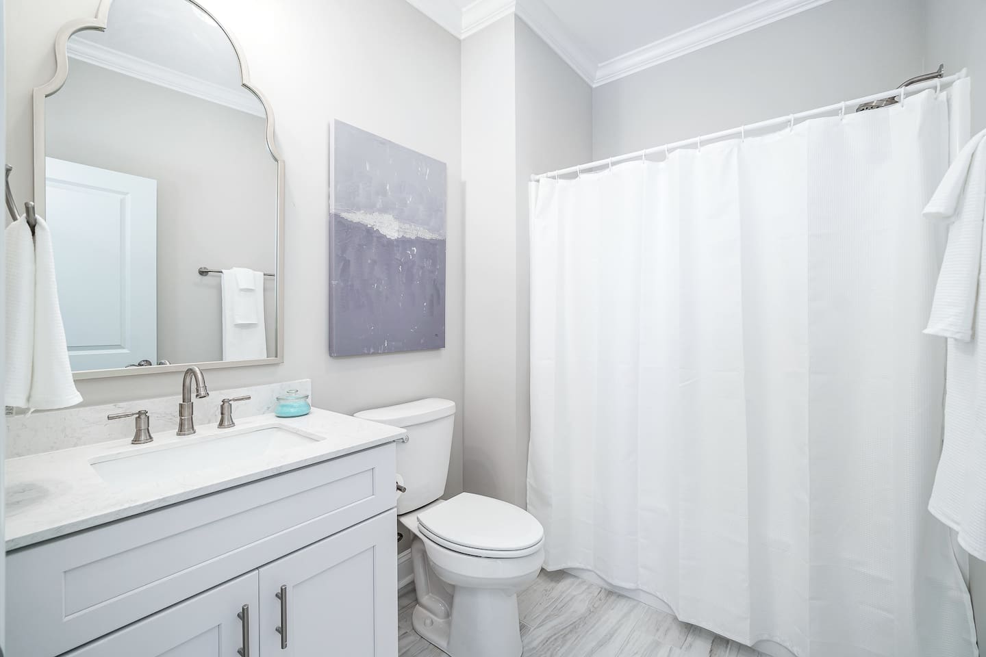 🌊 The Blue Salt Cottage | Modern Luxury Beach Rental in Morehead City, NC ⭐ Highlights & Amenities 🛏️ 3 Bedrooms | 3 Bathrooms – All with ensuite baths 🧑🧑🧒🧒 Perfect for families with kids - this home was designed with families in mind, featuring multiple safety measures and kid-friendly amenities! 🏖️Walk to Sound-Side Beach & Downtown MHC – 3 blocks to public sound-side beach access & waterfront 🌊 Quick Drive to Atlantic Beach – Only a 4-minute drive to the bridge leading to Atlantic Beach, NC ✨Stylish Living Room – 55” 4K Smart TV + plush seating 💻 Work-Friendly – Private desk & high-speed Wi-Fi 🍳 Fully Stocked Kitchen – Cook meals with ease 🚗 Convenient Location – Near shops, restaurants, parks & events 🎨 Professionally Designed by GoldLeaf Interior 🏖️ Location, Location, Location! Nestled in the prestigious Promise Land neighborhood, The Blue Salt Cottage offers the ultimate walkable vacation lifestyle. You’re just: 3 blocks (4-minute walk) to sound-side public beach access & Shevans Park with playground & tennis courts. A short walk to Downtown Morehead City’s waterfront, filled with restaurants, art galleries, boutiques, boat ramps, and local events. Only a 4-minute drive to the bridge leading to Atlantic Beach, NC—making it easy to enjoy both the sound and the ocean in one trip. Close to fitness studios, bars, and coffee shops—everything you need is within minutes. 🌅 Experience Morehead City From Your Doorstep From the moment you step outside The Blue Salt Cottage, the best of Morehead City is waiting for you. Start your morning with a short stroll to a local coffee shop, then wander the waterfront and soak up the coastal charm. In the afternoon, walk to Big Rock Landing to watch the excitement as giant marlin are brought in during the famous Big Rock Blue Marlin Tournament. Afterwards, enjoy a fresh seafood dinner at one of downtown’s acclaimed restaurants—all just steps from your door. When the evening winds down, the convenient location of The Blue Salt Cottage means you can simply walk home, sink into the plush living room couches, and recharge in the comfortable, luxury bedrooms for another day of adventure. 🌸 Spring & Summer - Attend the Big Rock Blue Marlin Tournament in June and watch the weigh-ins up close. - Explore sound-side beaches, kayak rentals, and waterfront festivals. - Take a quick drive to Atlantic Beach for sun, surf, and sand. 🍂 Fall - Take part in the NC Seafood Festival each October, just a short walk away. - Stroll the waterfront art walks and enjoy cooler coastal evenings. ❄ Winter & Holidays - Experience Morehead City’s Christmas parade and waterfront lights. - Cozy up in The Blue Salt Cottage after dining at festive local restaurants. 🛋 Living Room & Work Space - The open-concept living room features a comfortable couch, 55” 4K streaming TV, and stylish décor for relaxing evenings. For traveling professionals, enjoy a dedicated desk & work area paired with fast Wi-Fi, making remote work seamless. 🍳 Fully Stocked Kitchen - The modern kitchen is fully equipped with cookware, utensils, and quality appliances—perfect for whipping up quick breakfasts, seafood dinners, or family-style feasts. 🛏 Bedrooms & Bathrooms Bedroom 1 (Upstairs, King) – King bed, ensuite bath with tub/shower combo, ample dresser storage, and chic comfort-focused design. Bedroom 2 (Downstairs, Queen) – Plush queen bed, striking horse mural feature wall, and a luxury ensuite bathroom with a stand-alone tile shower. Bedroom 3 (Upstairs, Bunk Room) – Twin-over-queen bunk bed with twin trundle, clothes storage, and an ensuite bath with tub/shower combo—ideal for kids or groups. Each of the 3 ensuite bathrooms is spacious, modern, and designed with comfort in mind. ✨ Why Guests Love The Blue Salt Cottage - Luxury interiors curated by GoldLeaf Interior. - Flexible sleeping arrangements for families or groups. - Walk everywhere—shops, restaurants, parks, and waterfront events. - Just minutes to Atlantic Beach for even more coastal fun. - Perfect mix of modern amenities & coastal charm. 📍 Experience the best of Morehead City and beyond—book your stay at The Blue Salt Cottage today! FOLLOW US ON SOCIAL MEDIA @BLUESALTCOTTAGE